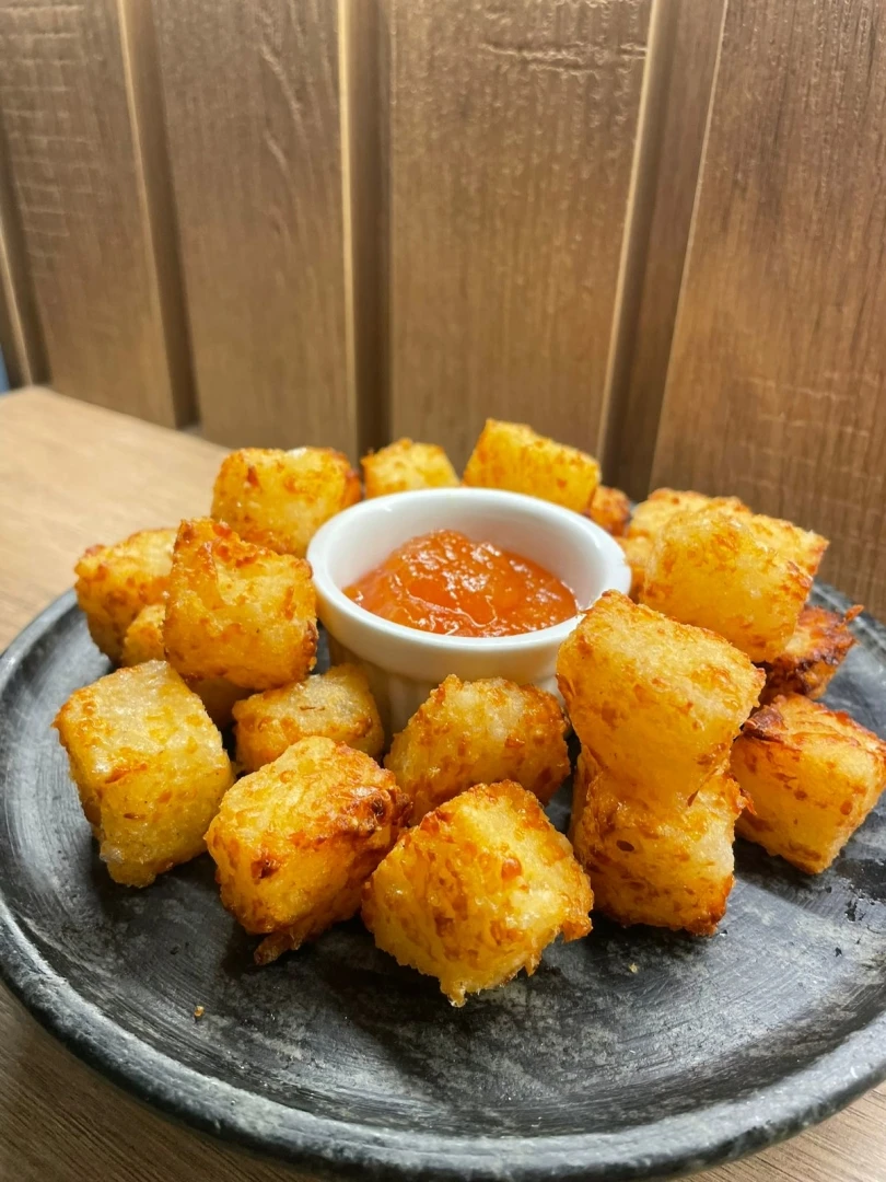 Tradicional Dadinho de tapioca, crocante por fora, bem derretido e macio por dentro. Acompanhado de uma deliciosa Geleia de pimenta